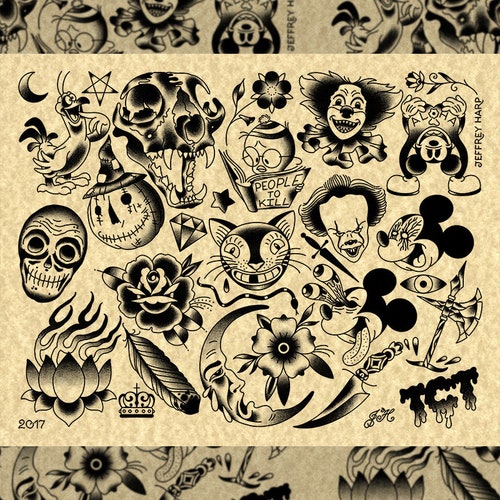 Who Else Is Excited For February S Friday The 13th As Usual We Will Be Doing 13 Tattoos This Is My Set Friday The 13th Tattoo Tattoo Flash Sheet 13 Tattoos